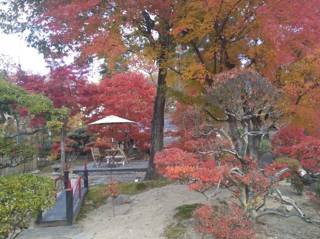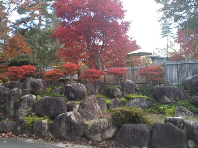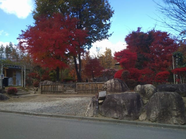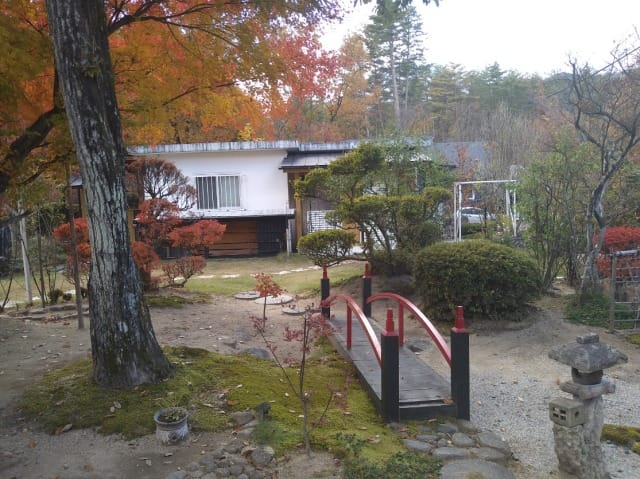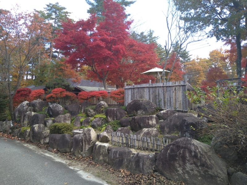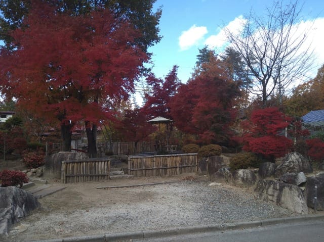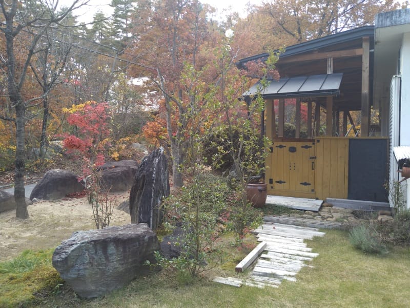 温泉付き居住者も多い別荘地です。秋は紅葉が綺麗なお庭です。